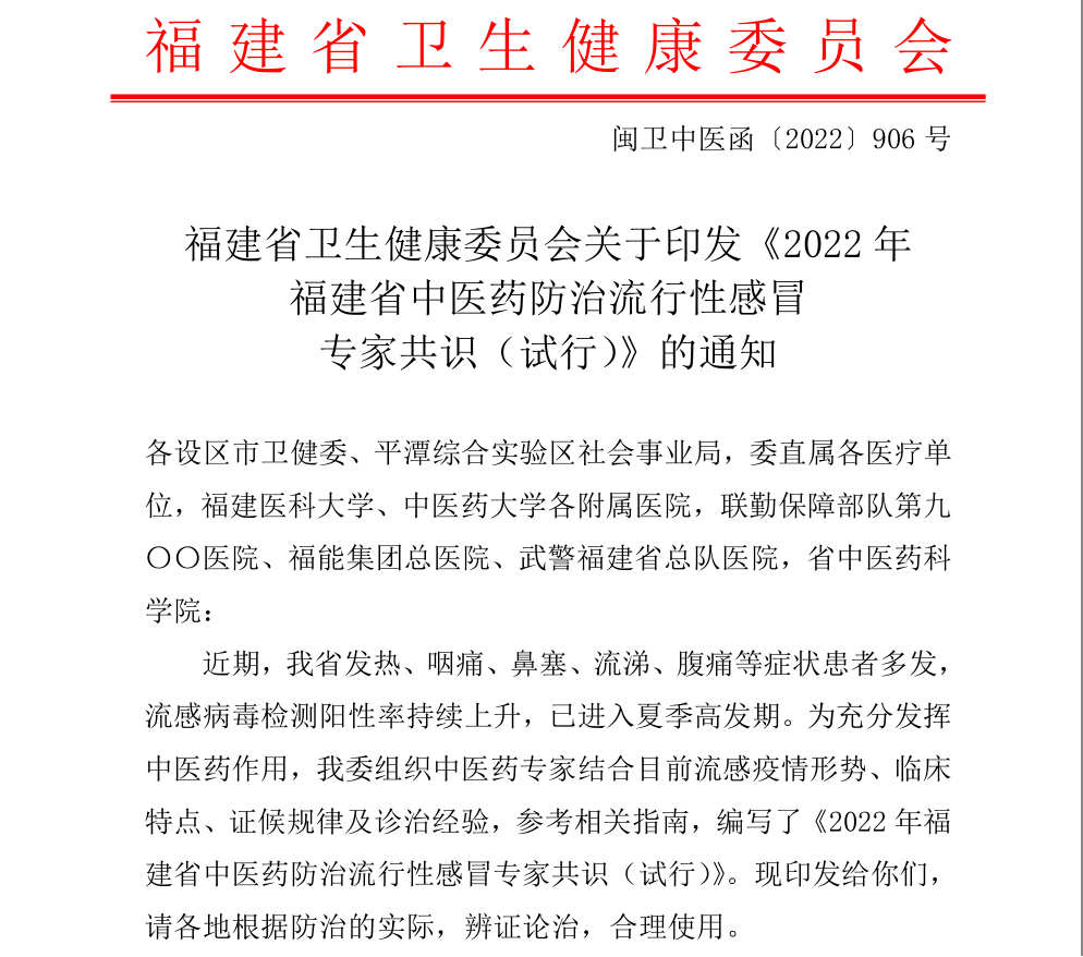| 进入夏季流感高发期,福建省流感病毒检测阳性率近期持续上升。为充分发挥中医药在流感防治中的作用,福建省卫健委印发《2022年福建省中医药防治流行性感冒专家共识(试行)》,其中推荐连花清瘟用于流感轻症风热犯表的治疗;若表证已解,后期以咳嗽为主,推荐使用连花清咳片治疗。