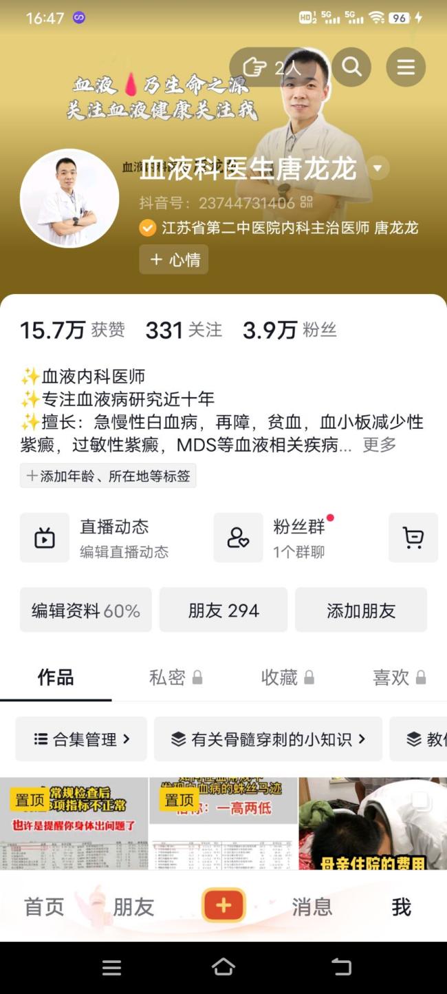 | 我们在刷抖音的时候,经常会刷到各种医生的科普视频,口腔科医生、整形科医生、皮肤科医生、儿科医生、妇产科医生…各种科室的医生应有尽有,因此也收获了不少粉丝。作为专业医生,血液科医生唐龙龙又是怎么走上这条“网红之路”的呢?