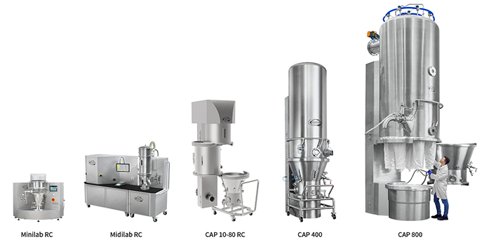DIOSNA紧凑灵活的MiniLab RC和Midlab RC系统适用于研发和中试生产,而CAP系列适用于中试和规模化生产。生产系列设备可完成从研发/中试到生产的完美地“工艺放大”。流化床处理器可实现几乎所有造粒技术,其中包括顶部,底部,切向喷雾造粒以及Wurster技术,拥有较大的兼容性。