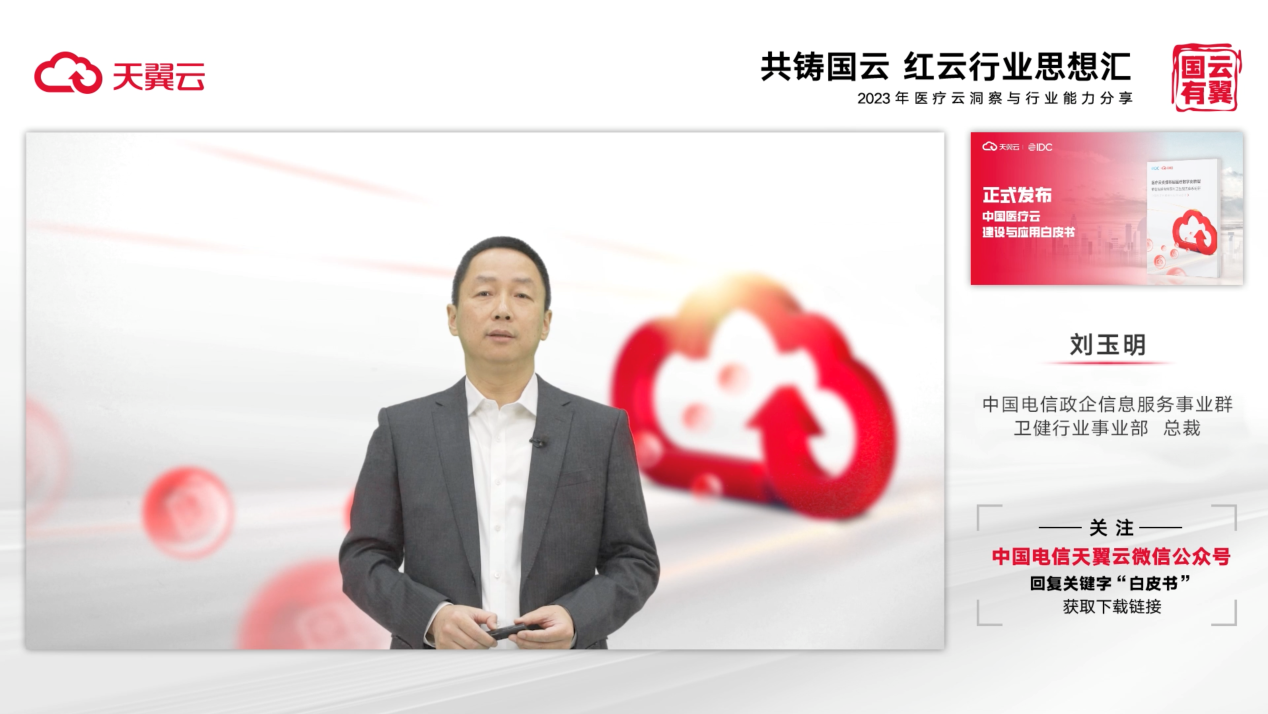 中国电信政企信息服务事业群卫健行业事业部总裁刘玉明表示,把握好行业平台对天翼云的核心能力要求,持续升级架构、完善体系、丰富生态,做好卫健信息化新基建工程的国云底座。