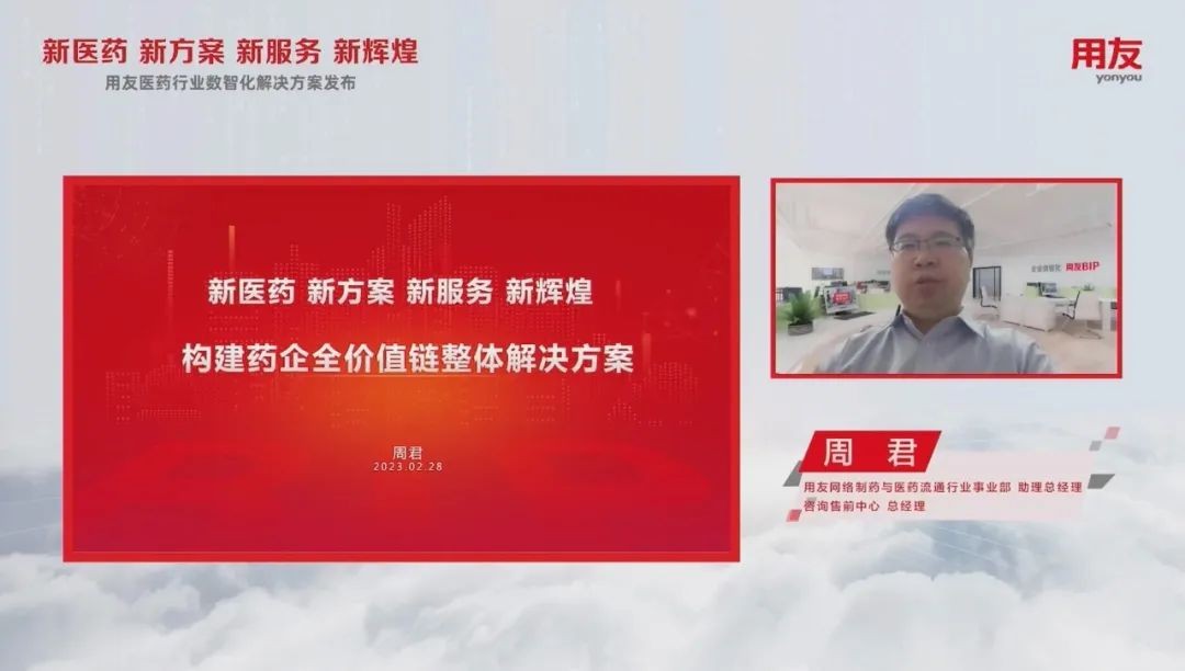 | 医药行业是我国国民经济的重要组成部分,是一个多学科先进技术和手段高度融合的高科技产业群体。于中国医药行业而言,未来五年是在极大不确定性下开启行业创新发展的五年,不确定中蕴含着巨大的风险和挑战,也孕育着新的机遇。医药企业需要把握技术创新、政策变革、国际环境、市场变化带来的重大机遇,搭乘数字化东风,加速驶入高质量发展的快车道。 2月28日,用友全新发布了依托用友BIP打造的医药行业数智化解决方案。线上汇聚行业顶尖专家及知名医药企业代表,坐而论道,思想碰撞,共话医药企业数智化转型新趋势,为打造高质量、韧性强的数智化发展路径躬身求索。同时,本次发布会也收到了来自上海医药、石药集团、济川药业、海灵药业、德荣医疗、上海凯宝药业等众多行业领军企业的视频祝贺,见证用友医药事业部正式扬帆起航。
