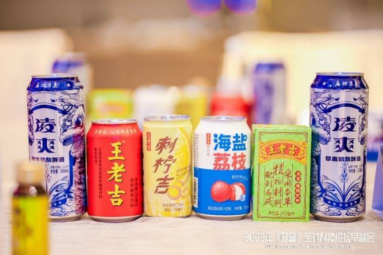 (图说:王老吉凉茶、刺柠吉天然高维C饮料、荔小吉海盐荔枝果汁饮料、白云山矿泉水是本次论坛官方独家指定饮料。)