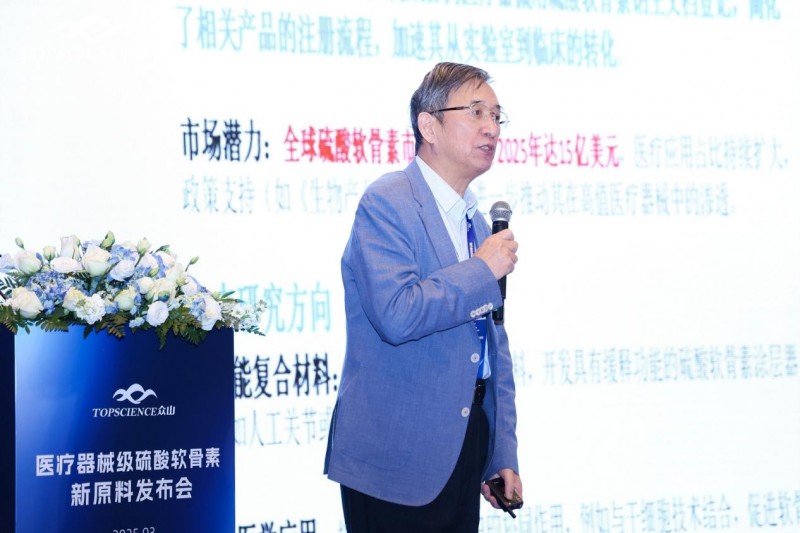 盛会启幕:共迎创新曙光 在“健康中国”战略的引领下,生物医药产业作为战略性新兴产业,正沐浴着前所未有的发展曙光。众山生物医疗器械级硫酸软骨素新原料的问世,不仅是技术突破的象征,更是中国医疗器械行业迈向高端化、规范化的重要一步。硫酸软骨素作为前沿生物材料,以其独特的性能优势,为医美、骨科、眼科等领域带来了全新的发展契机。 填补空白:痛点催生突破 硫酸软骨素作为一种重要的细胞外基质成分,广泛应用于眼科粘弹剂、关节腔注射液、膀胱修复液等高端器械中,具有不可替代的作用。然而,长期以来,硫酸软骨素产业以低值食品级原料出口为主,国内缺少高品质医疗器械级原料,应用研究和终端产品开发相对滞后,缺乏统一标准,掣肘创新产品的研发进程和市场拓展。 发布会上,广东省医疗器械管理学会副会长兼秘书长刘舜莉女士指出:“《医疗器械用硫酸软骨素钠》团体标准(T/GDMDMA 0035—2024)的发布,首次系统性规范了原料来源、质量控制、检测方法等关键指标,为II/III类医疗器械产品的研发提供了可靠保障。” 该标准由瑞玞生物、众山生物等11家单位联合起草,涵盖陆地源与海洋源硫酸软骨素钠原料。在蛋白质含量、细菌内毒素等核心指标上,标准严于国际药典要求,解决了检测方法不兼容等问题,为国内医疗器械级硫酸软骨素钠的生产提供了指导和规范。 领跑赛道:技术攻坚突破 作为国内首个完成医疗器械级硫酸软骨素钠主文档登记(登记号:M2024112-000)的企业,众山生物凭借多年深厚积累与技术沉淀,在行业中脱颖而出,备受瞩目。