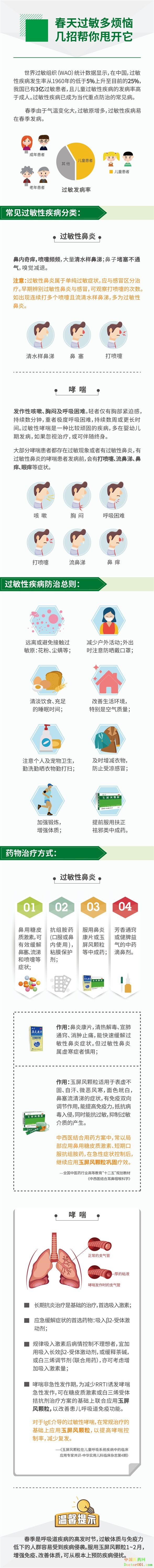 阳春三月,又到踏青出游好时节。然而,在这美好季节里,有的人却苦恼不已。春暖花开之际,也是各种花粉、尘螨、细菌活跃之时。这些都是肉眼难以察觉,但杀伤力极大的过敏原,极易诱发过敏性疾病。 过敏是指已产生免疫的机体,再次接受相同抗原刺激时所发生的组织损伤或功能紊乱的反应。这一疾病常规治疗方法是药物控制,但无法痊愈。等到接触过敏源后再控制症状又十分痛苦,因此做好预防工作是关键。 抗过敏是一个长期过程,易过敏人群要做好与过敏打持久战的准备! 那该如何对待春季过敏,做好防护措施呢?下面,就随小编一起来看看春季防治过敏要遵循的要点吧! ![]() 过敏体质者由于先天遗传等因素,极易过敏。治疗或益气固表,或凉血消风,以纠正过敏体质为总则。(参考出处《中医9种体质,日常调体保健指导手册》)玉屏风颗粒是由黄芪、白术、防风三药配伍而成,三药合用具有益气、固表之功效,可增强机体抗病能力,抵抗外邪入侵,亦可调节机体免疫力,改善过敏体质,抑制变态反应,减少过敏反复发作。 《国家基本药物目录》也指出玉屏风颗粒有增强机体免疫功能和抗过敏等作用,对过敏性疾病患者具有治疗和预防的意义。玉屏风颗粒联合抗组胺药物可对症治疗,缓解过敏不适等症状,同时还从细胞免疫和体液免疫上减少炎性物质组胺的产生,减少药物带来的副作用;且玉屏风颗粒药性温和,具有疗效好、经济实惠等优点,是治疗过敏性疾病的理想的“治未病”良方! (责任编辑:Doctor001) |