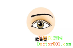 欧式双眼皮的眼窝是非常凹陷的, 眉弓要高, 但亚洲人往往会略显夸张。