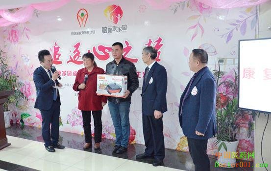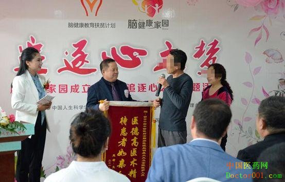 脑病朋友为脑健康教育扶贫计划宣讲团赵明星主任送锦旗 在主持人声情并茂的鼓励下,脑健康家园园丁、主治医师、患者本人及家属纷纷登台,表示愿意分享自己的求医经历和康复情况。患者李某的妈妈现场流下了激动地眼泪,她说:“李某之前通过治疗会自己会做饭,会整理内务了,虽然他不认识加号,但是可以自己去银行取钱了,28年的求医路虽然花了家里不少钱,但是,今天看到儿子的变化,一切都值了”。主治医生高成庭主任、赵明星主任也来到了活动活动现场,对于李某的康复也纷纷表示祝贺,并对李某今后生活中的注意事项进行了细心的叮嘱。