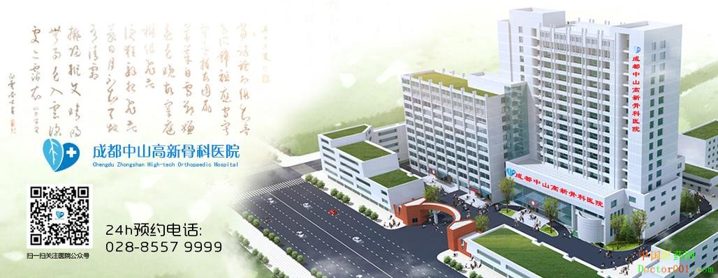 成都中山高新骨科医院是经市卫生局批准,依照国家医院建设标准建立的集医疗、科研、康复和预防保健于一体的三级骨科专科医院。成都市医保定点、工伤定点、120网络急救中心、新农合定点医院。医院荟萃了国内、省内知名专家,接诊医生全部为副主任医师以上职称。这些骨病科学领域的专家不但具有丰富的临床科研经验,同时还具有骨病治疗的独特造诣,针对股骨头坏死、颈腰椎、关节疾病患者的不同类型和不同病因,制定出个性化的诊疗方案,用精湛的医术、为广大骨病患者提供精准、专业的医疗服务。