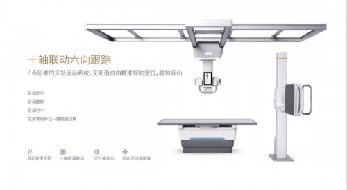 搭载全自动井字天轨运动系统,十轴联动六向跟踪,确保快速复合运动下自动定位、自动跟踪、自动对中,精准而稳定,各种临床摆位一键完成,更多人性化设计,为医生节省大量繁琐摆位时间,提升使用者使用效率和操作体验,进一步提升操作效率,简化工作流。