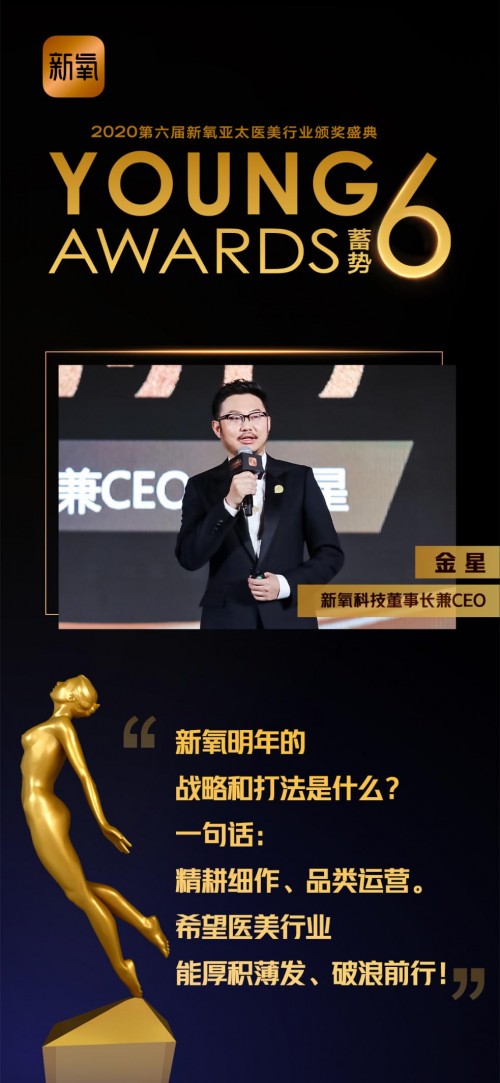 “大家应该有直观的感觉,医美市场虽然我们今天不知道它准确的增长数据,可以看到线上化还是一个坚定不移的长期趋势。疫情影响下,医美市场整个线上化的速度加速了。”新氧科技董事长兼CEO金星在新氧亚太医美行业颁奖盛典上表示。 平台重构,强化医美服务赋能能力 对于医美行业而言,2020年是蛰伏的一年。天眼查数据显示,截至12月中旬,2020年医美企业年度注销注销企业数1709家,同比2019年2351家减少27%。 “医美行业在这么多年激烈竞争当中,在优胜劣汰下,其实很多机构已经有了非常强的抗压能力的。”金星说。与此同时,医美消费者在加速线上化,并向头部平台聚拢。今年8月,新氧移动端活跃用户量登顶中国垂直医疗类APP首位。2020年第三季度,新氧移动端平均月活跃用户量870万,同比增长高达153.7%。 在医美消费加速线上化的过程中,作为链接供给端和需求端的互联网平台,扮演着链接、提效的重要角色。2020年,对于新氧而言,也是苦练内功、加速成长的一年。根据金星演讲内容,2020年新氧在“优系统”、“树品牌”、“谋创新”、“重治理”、“大基建”五个方面进行重构和升级,强化平台生态构建和赋能能力。