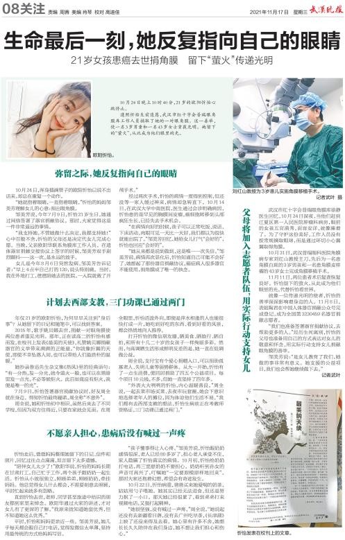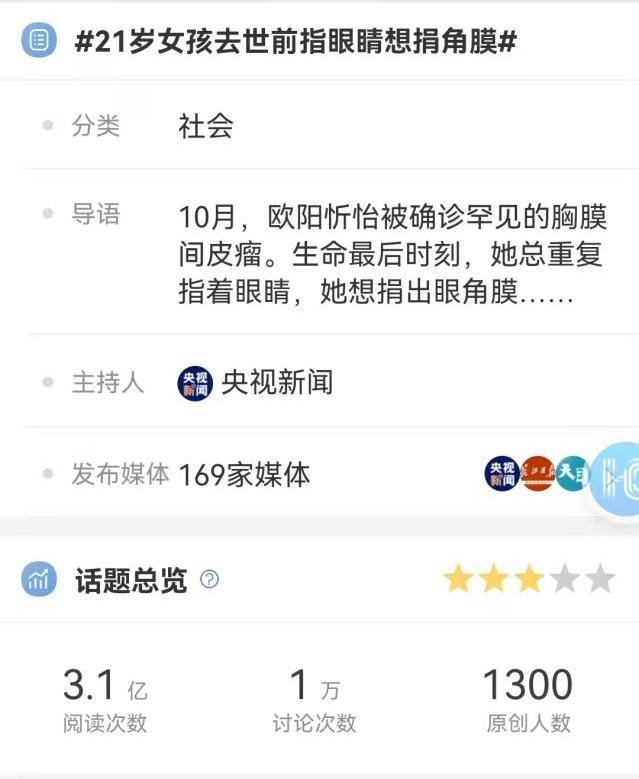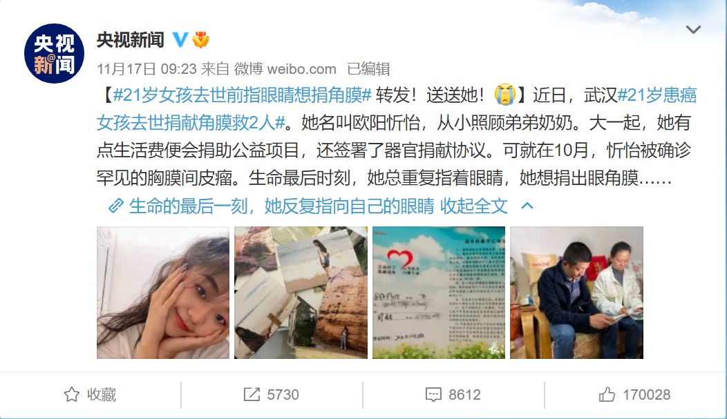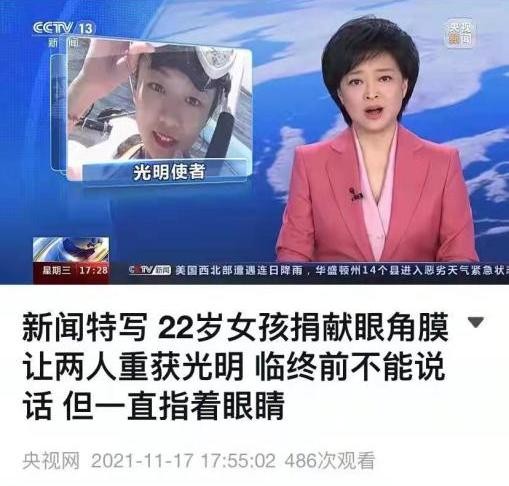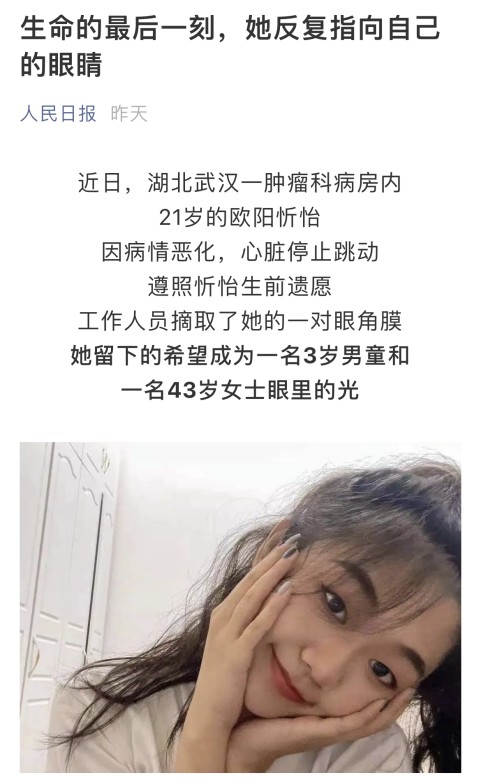 21岁女孩临终大爱引人泪目,人民日报等媒体争相报道