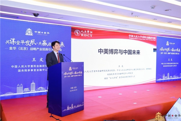 中国人民大学重阳金融研究院执行院长王文做主题分享 在驻京招商大使聘请仪式环节,金华市相关领导为8位驻京招商大使颁发聘书,进一步拓宽了招商引才渠道。随后,欣旺达、零跑汽车作为落户企业代表,分享了落地金华的感受和体会,并欢迎企业家朋友一起来金华创新创业、共谋发展、共创未来。