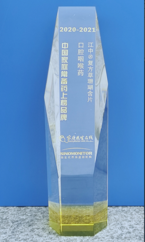 ![]() ![]() 本次发布的榜单上 江中牌健胃消食片、江中利活牌乳酸菌素片 荣获“2020-2021家庭常备药上榜品牌(肠胃类)” 江中牌复方草珊瑚含片 荣获“2020-2021家庭常备药上榜品牌 (口腔咽喉类)” ![]() 本次活动由家庭医生在线与新生代市场监测机构联合主办,旨在以综合榜单评定的形式,呈现国内市场的优质医药产品,辅助广大消费者完善家庭常备药箱,为老百姓提供购药指引,也可以推动优秀医药行业良性发展。亦为人们提供权威的“家中常备药指南” 1 江中牌健胃消食片 国民日常助消化药首选 自1994年上市至今 江中牌健胃消食片已畅销27年 每年售出2亿多盒 成为国内销量突破10亿大关的OTC单品 并已连续18年蝉联中国非处方药产品 综合统计排名消化类第1名 见证了中国人幸福生活的餐桌变迁 ![]()