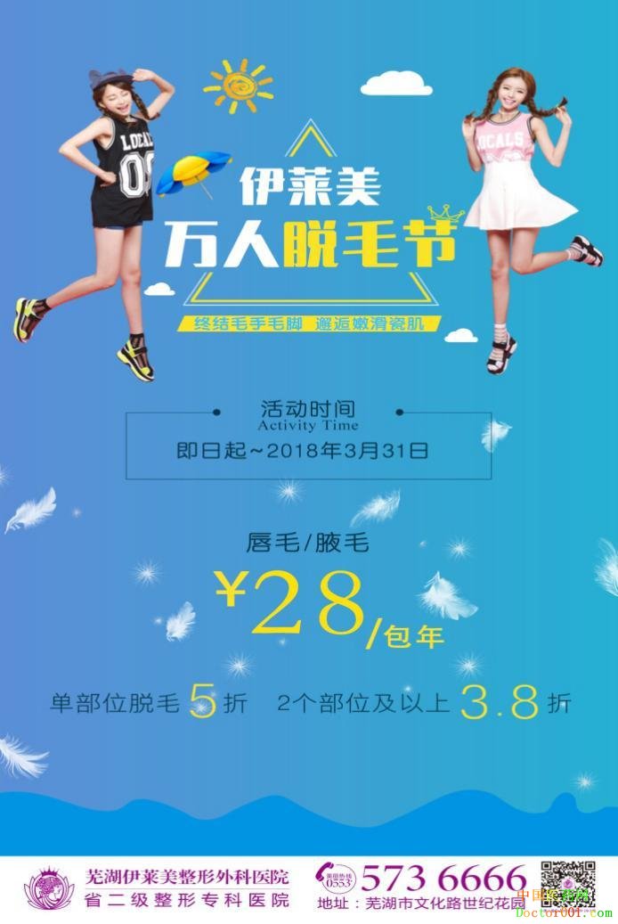 进入3月,芜湖地区的天气日渐回暖,脱毛需求也逐渐旺盛起来。随着医学技术发展和普及,越来越多的求美者选择激光脱毛,希望能够拥有持久甚至永久的脱毛效果。![]() 伊莱美万人脱毛节 钜惠点爆全城 阳春三月“草”长莺飞,天气越来越暖和,距离露肉的季节也越来越近。然而大腿、腋下、身体多余的毛发总像一根根利刺,让女性朋友们心有所虑。为顺应美女们的脱毛需求,芜湖伊莱美整形外科医院举办“万人脱毛节”,脱掉尴尬,纵享丝滑! ![]() 芜湖伊莱美医院怎么样?冰点脱毛4大优势 “毛”病一扫而光 1、安全:彻底脱掉唇部、腋下、腿部、手臂、比基尼线等五大部位毛发,非常安全。 2、高效:脱毛全程由电脑控制,可根据浓密、粗细毛发、肤质特点自动调节脱毛模式;精准捕捉毛囊,避免汗腺受损,快速高效。 3、无痛舒适:伊莱美采用高端激光脱毛设备,治疗速度是传统仪器的数倍,治疗过程冰爽舒适无痛。 4、嫩白紧肤:运用医学手段,脱毛之外还能健康嫩肤,即使是深肤色的人群也可无忧脱毛,快速拥有丝滑白嫩的健康肌肤。 不经意的露出腋毛、腿毛,总能让人瞬间尴尬,又影响给别人的美好印象,伊莱美万人脱毛节,你还在等什么呢? 1.参与活动前请一定要提前预约!预约!预约! 2.活动时间2018年3月1日--2018年3月31日 地址:芜湖市镜湖区文化路19-9号(芜湖伊莱美整形外科医院) (责任编辑:Doctor001) |