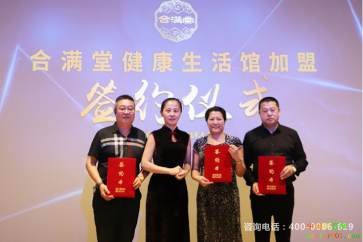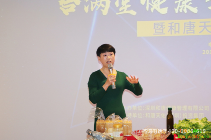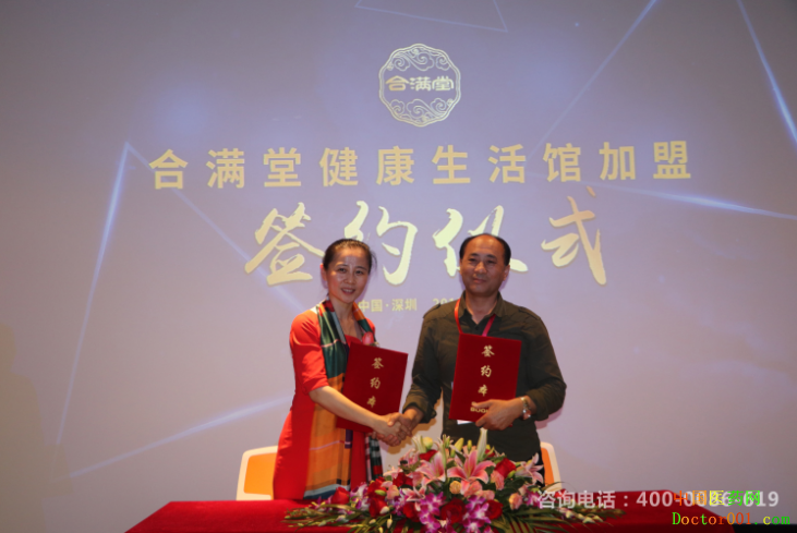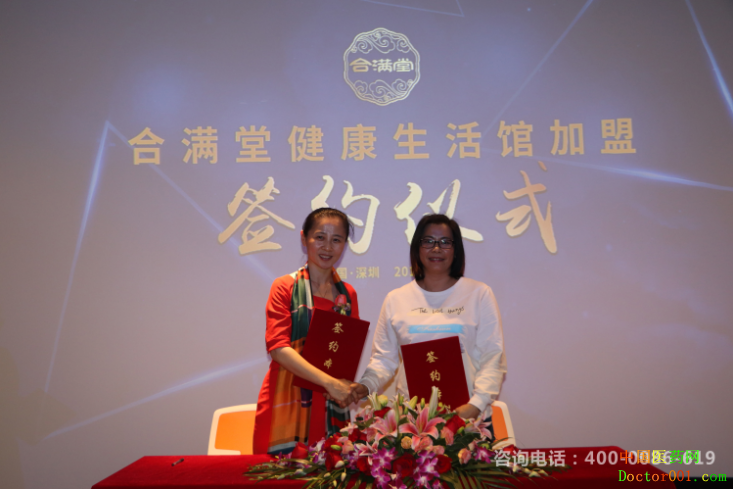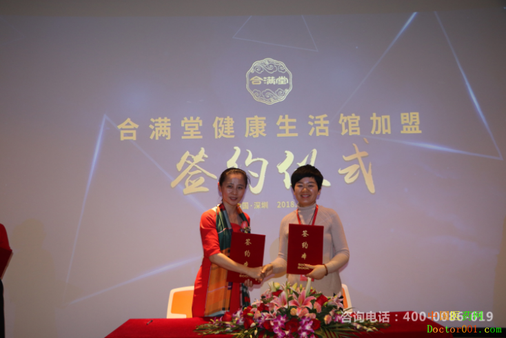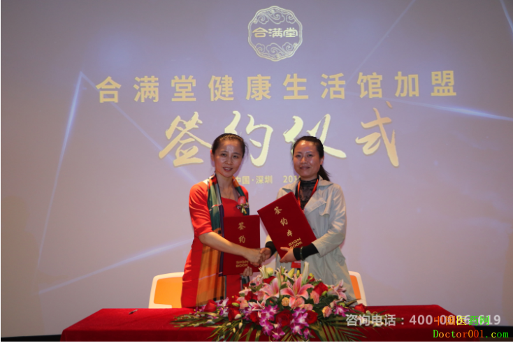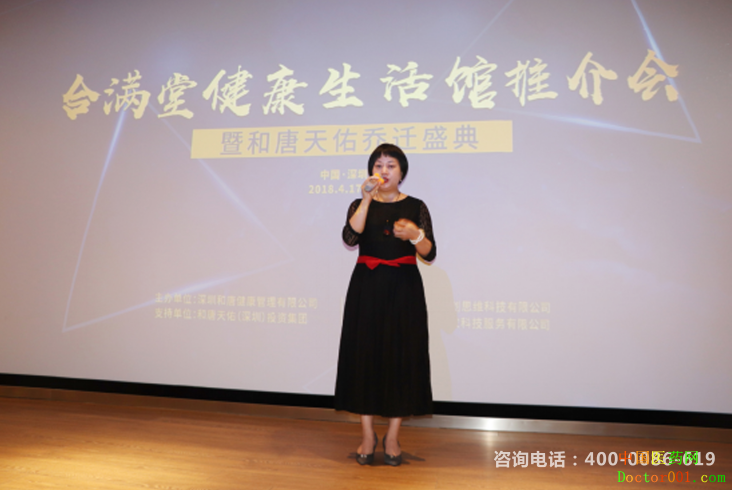 和唐健康商学院执行院长陈学华女士 4月18日的会议议程更加深了嘉宾对“合满堂”的认可,部分现场嘉宾遂决定加盟“合满堂”,并举行了签约仪式。
