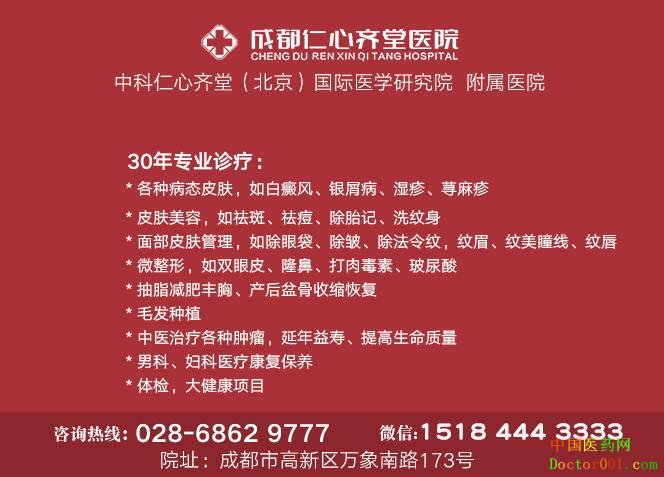 对于湿疹这样的疾病,很多的患者反映,老是反反复复,非常的折磨人,而很多的人去医院看病,吃了很多的西药、尝试过很多的药膏未果之后,就对于这种疾病失去了治疗的信心了,当今还有什么好的治疗方法吗? 治疗无果怎么办 你可以有个新的尝试 之所以这样的疾病会是这么的难治疗,实际上是有很多原因的,因为湿疹这样的皮肤疾病导致的原因不红啊确定,更是有通过多种方式治疗好的(锻炼、汗蒸以及一些偏方等等),而西医在治疗湿疹这件事情上表现出来的乏力,也使得更多的人想要尝试一番中医的治疗。 而在成都仁心齐堂医院,你将会遇到一种新的治疗方式,那就是中西医结合的特色疗法,这种治疗费的特色就在于中医为主,辅以西医,发挥各自优势。而这是以往的单纯激素治疗所不具备的,在这种技术的能力之下,你的病情将会有很好的控制。 而在仁心齐堂,更是有来自于国内皮肤科的中医名家汇聚于此、为广大湿疹患者带来中医精髓带来的强势治疗能力。更是得益于他们丰富的中医治疗经验,对于湿疹的判断更加的详实到位, ![]() 好医院实力品质 治疗皮肤病还你美丽 很多的患者所不知道的是,湿疹这种病的不好治疗,还有个很大的问题在里面,那就是患者自身的错误治疗,像是湿疹发作的时候,很多的患者都会选择用热水烫洗,实际上这样只是一时有效、饮鸩止渴。更是对于皮肤造成破坏。这是缺乏相关病理知识的体现, 但是好在成都仁心齐堂医院的出现,为广大换着患者的疾病治疗带来了省心,你有皮肤病,你朋友熟人有皮肤病,不要藏着掖着,这里能给治的,因为这是专业的中西医结合特色皮肤科医院,不仅仅是治疗湿疹,更是对于荨麻疹、白癜风、银屑病,祛痘去斑纹、瘦脸美容植发微整形这些非常的在行,治疗的效果令人欣喜。 (责任编辑:Doctor001) |