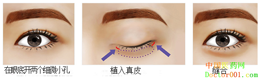 在眼底处开2mm微创小切口,向卧蚕的位置移植少许真皮组织,或人造真皮,在下睑自然形成一条微微的可爱隆起。手术恢复期短,2~3天即可恢复,不影响日常生活。