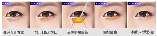 3、混合型:兼有眶隔脂肪突出与下睑皮肤松驰的特色,最为罕见。