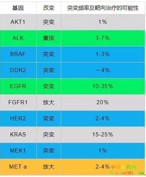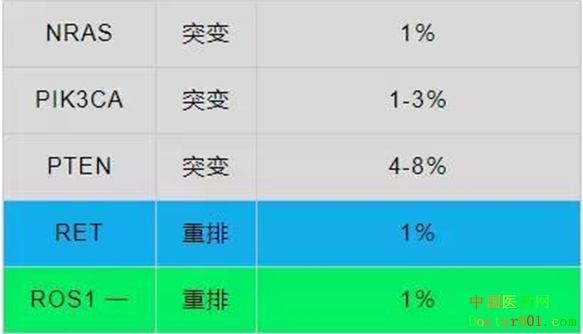 表一:肺癌突变靶点频率及靶向治疗的可能性 肺癌一线治疗四大方案 1. 有基因突变的:首选靶向治疗(TKI) 2. PDL-1高表达(>50%)的:免疫疗法PD-1(pembrolizumab--K药) 3. 非鳞癌患者: PD-1(K药)联合化疗(培美曲塞、顺铂) 化疗(紫杉醇、卡铂、贝伐珠单抗) 4. 鳞癌:双药化疗 肺癌一线维持治疗四大方案 1. 有基因突变的:首选靶向治疗(TKI) 2. PDL-1高表达(>50%)的:免疫疗法PD-1(pembrolizumab--K药) 3. 非鳞癌:贝伐珠单抗、pembrolizumab(K药) 4. 鳞癌:双药化疗 肺癌二线治疗三大方案 1. 对于EGFR靶点突变,但一代TKI耐药后,有T790M突变的患者,可以选择三代TKI:AZD9291(泰瑞沙) 2. 对于ALK靶点突变,一代TKI耐药,又有脑转移,可选择ALK二代TKI:alectinib(艾乐替尼) 3. 双药化疗 4. 免疫疗法:T药、O药 5. 如果PD-1阳性,可使用K药 肺癌三线治疗方案 单药化疗 肺癌靶向治疗方案 EGFR EGFR(19DEL,L858R):针对这两种突变的肺癌患者, 最新版NCCN指南推荐一代EGFR抑制剂易瑞沙,特罗凯和二代EGFR抑制剂阿法替尼一线治疗。国产药凯美纳也在CSCO指南中推荐用于一线治疗。 EGFR(G719X、S768I、L861Q):针对这3种位点突变,推荐使用阿法替尼,但是,阿法替尼对存在T790M突变、20号外显子插入突变的患者控制效果较差。除此,2018ASCO报道9291对于此类不常见突变疗效也不错,因此也可做选择药物。 EGFR 20 ins插入突变:多发生于亚裔、女性、非吸烟、腺癌人群。目前尚无批准的药物,很多研究在开展,可参加的治疗方案如下: 1.化疗 2.阿法替尼和达可替尼 3.波奇替尼和TAK788(AP32788) 4.阿法替尼+西妥昔单抗 5.9291+西妥昔单抗 第一代EGFR抑制剂耐药处理 EGFR 20外显子T790M突变:使用三代TKI,AZD9291(奥西替尼),泰瑞莎; MET扩增:联合克唑替尼治疗; 转变成小细胞肺癌:对此需联合小细胞肺癌的化疗方案进行治疗,如EP方案。当然在没有任何靶向药物可选的情况下,转归化疗是重要的方式。目前方案比较明确,不做赘述。 第三代EGFR抑制剂耐药处理 1. 基因检测后,当C797S突变是反式突变的话,可以9291联合易瑞沙或特罗凯。如果C797S突变是顺式突变,患者可以依据身体状况,进行化疗或者PD1/PDL1的免疫治疗,也有试验对顺式突变患者进行西妥昔单抗联合Brigatinib的治疗尝试。如果T790M突变丢失只存在C797S突变,此时单独使用一代TKI药物即可。 2. 基因检测出现MET扩增,可以9291联合克唑替尼/卡博替尼治疗。 3.基因检测HER2突变,可以选择阿法替尼。HER2扩增,可以使用TDM1或拉帕替尼。 4. 基因检测出RAS/BRAS突变,可以选择9291联合曲美替尼、舒尼替尼、索拉菲尼等。 5. 当检测出来FGFR1突变时,9291联合尼达尼布或德立替尼。 6.当检测出Braf突变,可以使用9291联合达拉菲尼。 7.当检测出PI3CA突变,可以使用9291联合mTOR抑制剂,如依维莫司等。 8.当病理检测发现患者已经转变为小细胞时,可以选择9291联合依托泊苷。除此,新的EGFR药物如EAI045也在试验进行中。 ALK基因融合突变 首选治疗方案为克唑替尼,入脑性不强。如果出现耐药,在考虑二代ALK抑制剂艾乐替尼或色瑞替尼或布加替尼。Brigatinib是一种新型的ALK和EGFR双重抑制剂,可强效抑制ALK的L1196M突变和EGFR的T790M突变。基于ALTA试验,FDA批准brigatinib用于治疗克唑替尼用药期间进展或无法耐受克唑替尼的ALK阳性转移性非小细胞肺癌患者。 劳拉替尼是靶向ALK的第三代药物,可抑制克唑替尼耐药的9种突变,对二代TKI药物耐药后仍有较高的有效性。同时劳拉替尼也具有较强的血脑屏障透过能力,入脑效果较强,特别适合对其他ALK耐药的晚期NSCLC患者。FDA已经授予Lorlatinib突破性疗法的认定,用于治疗先前接受过一种或多种ALK抑制剂的ALK阳性转移性非小细胞肺癌患者。 ROS1融合基因突变 出现ROS1突变的患者,更多的是年轻的、非吸烟的肺癌患者,其中肺腺癌居多。治疗ROS1融合的药物有克唑替尼、色瑞替尼,卡博替尼,劳拉替尼,Entrectinib以及TPX005,以及DS-6051b。 MET基因突变 目前针对MET基因异常的药物较多,克唑替尼及卡博替尼在临床中应用比较普遍,除此Capmatinib(INC280)、Tepotinib、Onartuzumab (MetMAb)、Rilotumumab、Savolitinib等药物也逐步进入II及III期临床试验. HER2基因突变 HER2(ERBB2)突变: T-DM1、阿法替尼、曲妥珠单抗、吡咯替尼(Pyrotinib)和波奇替尼。在肺癌的现行NCCN指南中,对于HER2突变的肺癌推荐以T-DM1为主。 BRAF基因突变 FDA获批了达拉菲尼(150mg bid)联合曲美替尼(2mg qd)的治疗方案,有效率ORR是64%,疾病控制率DCR为72%,PFS为9.7个月。除此,达拉菲尼、威罗非尼单药都用于BRAFV600E突变肺癌患者的治疗,威罗菲尼单药治疗有效率ORR 42%,PFS是7.3个月。达拉菲尼单药治疗有效率ORR是33%,DCR是56%。 RET基因突变 NCCN指南建议凡德他尼和卡博替尼用于RET阳性的NSCLC患者。最近报道的RET抑制剂BLU-667和LOXO-292以及RXDX-105在治疗RET融合的NSCLC患者中效果也是非常不错! KRAS基因突变 MEK抑制剂曲美替尼联合单药化疗治疗KRAS突变肺癌 CDK4/6抑制剂Abemaciclib 免疫治疗 近期临床前试验显示阿法替尼通过ERRB2通路抑制KRAS突变引发的致癌活化,有潜在治疗价值。 肺癌转移患者的治疗方案 对转移性扩散的肺癌患者来说,全身治疗将是核心。 归结为:找到治疗靶点的话,首要做的是对患者进行靶向治疗。如果未找到治疗靶点,对于目前来说,就按标准的含铂化疗方案和免疫检查点抑制剂进行治疗。已获批的免疫检查点抑制剂是pembrolizumab(派姆单抗)。 首选从靶向治疗谈起。针对EGFR,ALK和ROS1突变及BRAF,HER2和MET外