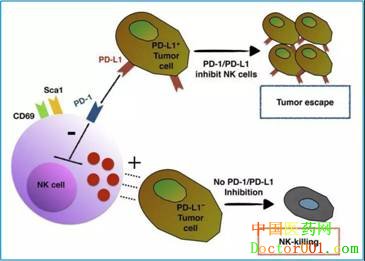 (NK细胞与免疫检查点抑制剂作用机制) Raulet博士说:“在癌症免疫治疗领域,人们一直专注于动员抗肿瘤T细胞。我们相信NK细胞也占有重要地位。检查点治疗与其他NK指导的免疫治疗相结合,可以使我们针对目前对现有疗法无反应的多种类型的肿瘤。” T细胞和NK细胞都能识别并杀死癌细胞,但它们以非常不同的方式进行。NK细胞识别癌细胞变化的模式,是免疫系统的第一道防线。另一方面,T细胞识别癌细胞上的单个异常分子并引发更集中的攻击。