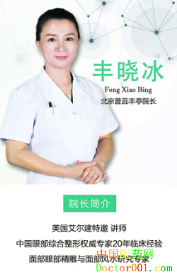 追求技术卓越的院长 丰晓冰院长是北京普蕊丰亭医疗美容的创始,也是一个对技术极度专注的资深整形医生。丰晓冰对技术革新的孜孜不倦的追求为整个普蕊丰亭的成长刷下浓厚的注重技术的底色。 丰晓冰院长创立个人品牌之前是三甲医院整形科室的主任医师,拥有20多年的临床经验及数万例成功案例,尤其擅长面部脂肪精雕、线雕提升、眼部塑形、注射类整形,经验丰富,被称为零差评的闺蜜级医师。 “德不近佛者不可为医,技不近仙者不可为医”这是丰晓冰院长的座右铭。作为国际医学美容学会会员;中华医学会整形外科分会会员;中国医师协会美容与整形医师分会会员;中国中西结合协会整形美容分会常务副会长,丰晓冰院长多次参与出席行业重要交流会议,并与众多业界大咖一起探讨关于未来医美行业的发展与技术升级。 在与美国艾尔建公司的合作上,普蕊丰亭不留余力,全面引进最新技术,希望能将国内的医美技术提升,让行业发展更进步,更快速。