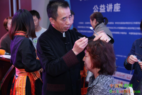 讲座结束后,覃迅云教授和高加林主任以及孔繁纲主任现场举行了义诊环节,通过目诊镜诊断出患者所存在的疾病,并为患者制定了诊疗方案,大家井然有序的排队看诊。