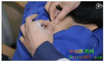 8.提(挤)捏手法:两手半握拳,以食中两指,将患者皮肤用力提起,作连续不断的灵活动作,叫做提捏手法。例如:挤捏大椎穴。
