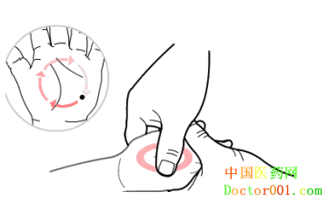 4、运法:以左手托患儿左手,以右手拇指或食中两指拼拢的罗纹面,由某穴作弧形或环形,推运至他穴称为运法。多用于面型穴位。例如:运八卦、运水入土等到穴。