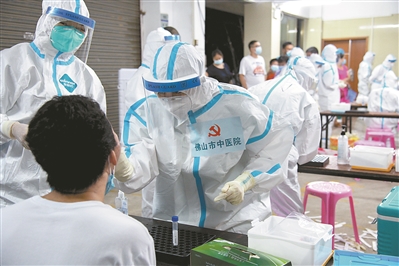 广佛同心 携手抗疫 ![]() 佛山多地开展大规模核酸检测工作。 统筹/黄子宁 文、图/广州日报全媒体记者高敏华、刘艺明、冯嘉敏、刘鹏飞、黄子宁 通讯员陈敏杰、潘丽雯 广佛携手抗疫进行时。据权威发布,截至5月29日24时,佛山市累计报告新冠肺炎确诊病例1例、新冠病毒无症状感染者4例。另外,截至5月29日14时,全市累计核酸采样118万人,其中已出结果15.36万人,均为阴性。 值得一提的是,来自广州医院的医护星夜驰援,支持佛山禅城、南海大规模核酸采集工作,包括广东省人民医院、中山大学附属第一医院、中山大学附属第三医院、南方医科大学附属医院等。此外,中山大学孙逸仙纪念医院还“派出”了“移动方舱实验室”,提高佛山核酸采集效率。 此外,佛山正加速通过新冠病毒疫苗接种以筑牢“防疫墙”。数据显示,目前,佛山全市累计接种新冠疫苗488.21万人、627.54万剂次,目标人群接种率超过了七成。 疫情:存在家庭聚集性感染 据佛山市新冠肺炎防控指挥部通报,截至5月29日24时,佛山市累计报告新冠肺炎确诊病例1例、新冠病毒无症状感染者4例。其中,居住在南海区华福御水岸的陈某及其儿子、儿媳为新冠病毒无症状感染者,1岁1个月的孙女梁某某为新冠肺炎确诊病例,现均在佛山市第四人民医院隔离治疗。 据佛山市疾控中心副主任孙宝志介绍,佛山本次疫情有三个流行病学特点:一是感染个案均有比较明确的感染来源;二是广州个案、佛山个案的密切接触者以及密切接触者的密切接触者(次密)涉及活动场所较多,部分场所属于通风不良的密闭空间;三是个案涉及的人群年龄分布跨度较大,部分个案存在家庭聚集性感染。 据数据,目前通过流行病学调查,共排查到密接者124人、次密接者78人,已追踪到位并落实集中隔离管理的有121人,核查在外市的有72人,正在核查的有8人。陈某居住的华福御水岸1座共124户299人,29日晚已经全部转移到集中隔离场所。 从5月27日起,佛山市南海区、禅城区、顺德区陆续启动大规模核酸检测排查工作,迅速调度全市核酸采样人力、物资、设备等资源,抽调市直医院和部分辖区的医务人员2770人支援禅城区和南海区核酸检测工作。 截至5月29日14时,全市累计核酸采样118万人,其中已出结果15.36万人,均为阴性,其余结果待出。 疫苗:目标人群接种率超七成 据了解,当前,佛山全市累计接种新冠疫苗488.21万人、627.54万剂次,目标人群接种率超过了七成,为71.46%。 值得关注的是,目前佛山实行疫苗预约制。记者昨日实地体验了一番,不到半小时即接种上疫苗。 29日晚上10时20分,记者通过佛山市移动健康综合服务平台的“个人预约入口”,“抢”到了顺德体育中心接种点30日一早8:30~9:30时段的一个疫苗接种预约号。 作为顺德中心城区大型接种点之一的顺德体育中心,该点承担了街道市民及顺德其他镇街市民疫苗接种服务。 30日上午8时12分,记者来到了顺德体育中心接种点。在正门入口处,工作人员表示亮码(预约条形码、绿码)方可通行。 进入后,记者跟随大队伍排队进入2号接种入口。记者看到,市民在街道工作人员的指引下,有序前进。另外,路上随处可见提示标语,要求市民接种过程中全程佩戴好口罩。 在排队进入接种登记入口前,工作人员会为每一位市民发放疫苗接种知情同意书。市民填写签字后,再带着这一份通知书进入登记区,由社区卫生服务中心工作人员进行相关信息登记。 在登记区,工作人员详细询问记者的过敏史、慢性病史等情况。在告知注意事项后,一份预防接种凭证交到了记者手中。记者看到,在该凭证上,有疫苗剂次、疫苗批号、生产企业、接种单位等信息。 记者进入接种区后,则是自行找到排队相对不是那么长的接种台前,并在地面指示下进行隔间距离的排队。记者看到,接种区现场不拥挤,市民排队等候接种,一切井然有序。 8时38分,记者接种上新冠病毒疫苗第一针,距离记者进入顺德体育中心仅过了26分钟。 随后,在志愿者的引导下,记者来到留观区进行疫苗注射后的观察。半小时后,记者跟随现场指引离开接种点,完成了整个接种流程。 暖心:广佛齐心抗疫 广州医护人员星夜驰援 值得一提的是,在28日晚,广东省人民医院、中山大学附属第一医院、中山大学附属第三医院、南方医科大学附属医院、暨南大学附属第一医院等500名广州医护人员,佛山市直医疗机构、顺德区、三水区共派出精干力量2230人,星夜兼程奔赴支援禅城区核酸检测。 同样,广东省卫健委还派遣国家公共检测实验室中山大学附属第一医院及中山大学孙逸仙纪念医院共2辆“移动方舱实验室”前往支援佛山核酸检测工作。 据广州日报全媒体记者报道,这一“移动方舱实验室”,日检测量可达到3000人份~5000人份,10比1混采可达3万人份~5万人份,有效提高了核酸采集的效率。 为了感谢广州的援助,5月29日傍晚,佛山市委副书记、代市长郭文海还带队到禅城区看望慰问广州援助佛山开展核酸检测的医护人员。 据当地媒体报道,郭文海来到岭南明珠核酸检测点现场,与禅城区相关负责人、工作人员一起为广州援助佛山的医护人员送上煲仔饭,以感谢大家义无反顾来到佛山,昼夜坚守岗位的无私奉献。 现场,郭文海夸广州医护人员“非常专业,非常有经验”。郭文海还要求禅城区要及时总结经验,联动各方力量,形成更大的工作合力,在平稳有序中加快推进好核酸检