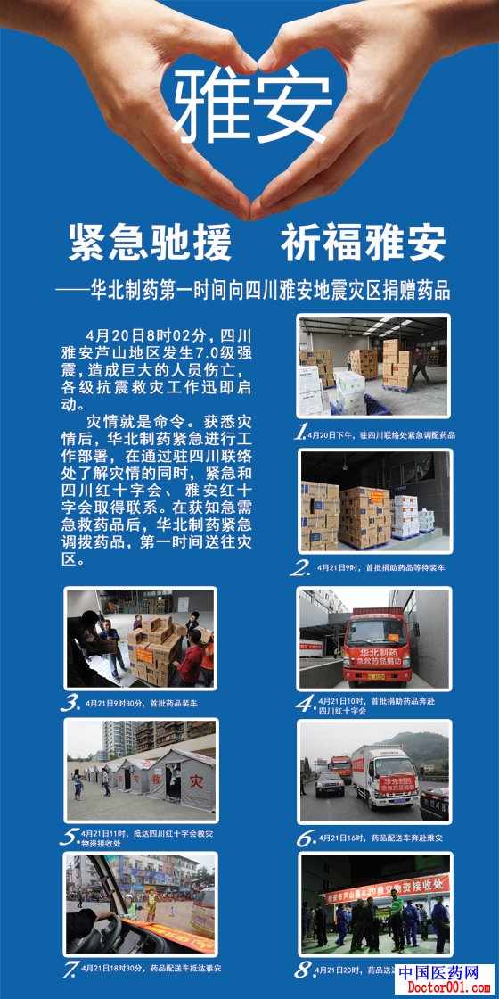 ![]() 4月20日一早,四川雅安芦山地区发生7.0级强震,造成巨大的人员伤亡,各级抗震救灾工作迅即启动。 灾情是命令,获悉灾情后,华北制药紧急进行工作部署。一方面通过四川当地办事处了解灾区情况,另一方面分别联系四川省红十字会和雅安市红十字会,了解救灾物资需求情况。 急灾情所急,在获知当地急需急救药品的信息后,华北制药即刻安排药品调拨。4月21日晚,经过紧锣密鼓的部署和配送,华北制药捐助的首批药品已经第一时间送达雅安抗震救灾中心,货值达百万元。华北制药是国内特大型医药企业,也是军备药品定点生产企业之一,此次捐助的药品主要为阿莫西林胶囊、青霉素钠、克林霉素磷酸酯、尼美舒利等抗感染和解热镇痛类急救药品。 华北制药相关人员表示将持续关注灾情,了解灾区所需药品品种的需求及供应情况,再行组织其他灾区急需的药品及物资送往灾区 (责任编辑:Doctor001) |