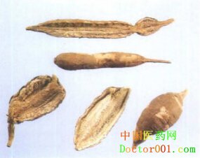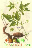 为葡萄科植物白蔹Ampelopsis japonica (Thunb.)Makino的干燥块根。产于华北、华东及中南个省区,广西、广东也有生产。春、秋二季采挖,除去泥沙及细根,洗净,切成纵瓣或斜片,晒干。