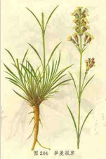【标题】 山银柴胡 【拼音】 Shān Yín Chái Hú 【拉丁文】 1.Gypsophila oldhamiana Miq.2.Gypsophila paniculata L.3.Gypsophila pacifica Kom.4.Arenaria juncea Bieb.5.Silene jenis-seensis Willd.6.Silene jenisseensis Willd.var.oliganihella(NakaiexKitag.)Y.C.Chu7.Silene repens Patr. 【性味】 甘;性微寒 【归经】 肺;肝;胆;肾;胃经 【功效】 凉血;清虚热。主阴虚肺劳;骨蒸潮热;盗汗;小儿疳热;久疟不止 【药用】 为石竹科植物长蕊石头花、圆锥石头花、大叶石头花、灯心草蚤缀、旱麦瓶草、长白旱麦瓶草及毛萼麦瓶草的根。 【注意】 1.《沙漠地区药用植物》:"气虚泄泻者忌用。" 2.《河北中草药》:"血虚发热者忌用。" 【用法用量】 内服:煎汤,3-9g。 【形态】 1.多年生草本,全株无毛,高60-80cm。根粗壮而长,外皮淡棕色,有细皱纹,常呈扭曲状。茎直立,簇生,绿色或紫色,上部多分枝,节明显。单叶对生;无柄;叶片长圆状披针形至狭披针形,长4-8cm,宽5-15mm,先端尖,基部微抱茎,全缘;主脉3出。聚伞花序顶生或腋生;苞片卵形,先端锐尖;花梗直立;花萼钟状,裂片5,萼齿边缘有睫毛;花两性;花瓣5,粉红色或白色,狭倒卵形,先端微凹,基部具长爪;雄蕊10,比花瓣长;子房卵圆形,柱头2,伸出花冠外。蒴果卵状球形,比萼长。种子圆肾形,密被条状微突起。花期7-9月,果期8-10月。 2.与以上种类的区别是:叶披针形或条状披针形,先端锐尖;叶脉1,少为3。圆锥状聚伞花序疏散,花小,多至于朵以上,白色有浓香;花梗柔细,为萼长的2-3倍。花期4-6月,果熟期7-8月。 3.与以上种类的区别是:叶长卵形,稍肉质,先端急尖。花梗长5-6(10)mm,花萼长2-3mm;花瓣淡粉紫色或粉红色。 4.多年生草本,高约30cm。主根粗而伸长。茎直立,多数丛生,基部有许多老叶的残留物;茎基部无毛,上部被多细胞的腺毛。叶片窄线形,长1.5-10cm,宽0.3-1mm。聚伞花序顶生;花白色,花梗、花萼被有腺毛;萼片5,卵形,边缘膜质;花瓣倒卵形,先端微凹;雄蕊10;花柱3。 5.茎直立,不分枝。基生叶簇生,叶片线状披针形。花序总状或狭圆锥状;花黄白色;花萼筒状,萼齿卵状三角形,先端渐尖或急尖。脉10条;花瓣2叉状中裂,爪部狭倒披针形,具鳞片状附属物。蒴果6齿裂,齿片外弯。花期7-8月,果期8-10月。 6.全株低矮,高14-20(30)cm。基生叶长6-7cm,宽2-3mm。花少数(3-7朵),要倒卵状椭圆形,长9-10mm,常具紫色脉;花瓣较宽大。 7.多年生草本,高15-50cm。全株有细柔毛。根状茎长蔓状,匍匐地面上;地上茎簇生或基部略匍匐,上部直立,花期后自叶腋常生出无花的短枝。叶条状披针形,长2-7cm,宽2-7mm。聚伞花序顶生或近枝端腋生;花白色;萼筒棍棒形,长1.2-1.5cm,外面密生柔毛;花瓣5;花柱5。 【生态环境】 1.生于海拔2000m以下的石山坡干燥处、海滨荒山及沙坡地。 2. 生于向阳地势、排水良好和有腐殖质的石灰壤土上。 3. 生于多石质干山坡、石碰子缝间、湖边沙岗及沙质草地。 4.生于石砾质干山坡及丘陵坡地上。 5. 生于山坡柞树疏林下、山坡石缝间,常成片生长。 6. 生于高山带石碰子缝间及林下草地。 7. 生于河岸及山坡草地、湿草甸、湖边的固走沙丘、草原、多石质干山坡、山坡林下。 【产地】 1.分布于东北、华北及陕西、甘肃、山东、江苏、河南等地。 2.分布于新疆、江苏、台湾等地。 3.分布吉林、辽宁、河北、内蒙古、山西、新疆、山东、江苏等地。 4.分布于东北、华北、西北及山东地区。 5.分布黑龙江、吉林、辽宁等地。 6.分布于黑龙江、吉林等地。 7.分布于黑龙江、辽宁、内蒙古等地。 【显微特征】 旱麦瓶草根横切面:木栓层由10数列木栓细胞组成,韧皮部较窄,木质部宽广,占根直径的大部分,韧皮部薄壁细胞。及木射线细胞含较多草酸钙簇晶。 【化学成分】 1.圆锥石头花 茎含荭草素(orientin),合模荭草素(homoorientin),叶含菠菜甾醇(spinasterol),22,23-二氢菠菜甾醇(22-dihydrospinasterol),以及3-O-β-D-吡喃半乳糖-(1→2)-[β-D-吡喃木糖-(1→3)]-β-D-吡喃葡萄糖醛酸基皂皮酸-28-O-β-D-吡喃葡萄糖-(1→3)-(β-D-吡喃木糖-(1→4)]-α-L-吡喃鼠李糖-(1→2)-β-D-吡喃岩藻糖甙[3-O-β-D-galactopyrano-syl-(1→2)-[β-D-xylopyranosyl-(1→3)]-β-D-glucuronopyranosylquillaic acid 28-O-β-D-glucopyranosyl-(1→3)-[β-D-xylopyranosyl-(1→4)]-α-L-rhamnopyranosyl-(1→2)-β-D-fucopyranoside],3-O-β-D-吡喃半乳糖-(1→2)-[β-D-吡喃木糖-(1→3)]-β-D-吡喃葡萄糖醛酸基皂皮酸-28-O-β-D-吡喃阿拉伯糖-(1→4)-β-D-吡喃阿拉伯糖-(1→3)-β-D-吡喃木糖-(1→4)-α-L-吡喃鼠李糖-(1→2)-β-D-吡喃岩藻糖甙[3-O-β-D-galactopyranoyl-(1→2)-[β-D-xylopy-ranosyl-(1→3)]-β-D-glucuronopyranosyl quillaic acid-28-O-β-D-arabinopyranosyl-(1→4)-β-D-arabinopyranosyl-(1→3)-β-D-xy-lopyranosyl-(l→4)-α-L-rhamnopyranosyl-(1→2)-β-D-fucopyra-noside],3-O-β-D-吡喃葡萄糖-(1→2)-β-D-吡喃葡萄糖醛酸基棉根皂甙元-28-O-β-D-吡喃葡萄糖。(1→3)-[β-D-吡喃木糖-(1→4)]-α-L-吡喃鼠李糖-(1→2)-β-D-吡喃岩藻糖甙[3-O-β-D-glu-copyranosyl-(1→2)-β-D-glucuronopyranosyl gypsogenin-28-O-β-D-glucopyranosyl-(1→3)-[β-D-xylopyranosyl-(1→4)]-α-L-rhamnopyranosyl-(1→2)-β-D-fucopyranoside],3-O-β-D-吡喃木糖-(1→3)-[β-D-吡喃半乳糖-(1→2)]-β-D-吡喃葡萄糖醛酸基棉根皂甙元-28-O-β-D-吡喃葡萄糖-(1→3)-[β-D-吡喃木糖-(1→4)]α-L-吡喃鼠李糖-(1→2)-β-D-吡喃岩藻糖甙[3-O-β-xylopyra-nosyl-(1→3)-[β-D-galactopyranosyl-(1→2)]-β-D-glucuronopy-ranosyl gypsogenin-28-O-β-D-glucopyranosyl-(1→3)-[β-D-xylopy-ranosyl-(1→4)]-α-L-rhamnopyranosyl-(1→2)-β-D-fucopyrano-side]。 2.大叶石头花 