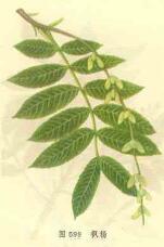 【标题】 枫杨 【拼音】 Fēnɡ Yánɡ 【异名】 麻柳树、水麻柳、小鸡树、枫柳、蜈蚣柳、平杨柳 【性味】 辛、苦,温。有小毒。 【功效】 杀虫止痒,利尿消肿。叶:血吸虫病;外用治黄癣,脚癣。枝、叶捣烂可杀蛆虫、孑孓。 【药用】 胡桃科枫杨属植物枫杨Pterocarya stenoptera DC.,以枝及叶入药。夏秋采,晒干备用。叶多鲜用。 【用法用量】 2~3钱;外用适量,鲜叶捣烂敷或搽患处。 【图片】 枫杨 ![]() (责任编辑:Doctor001) |